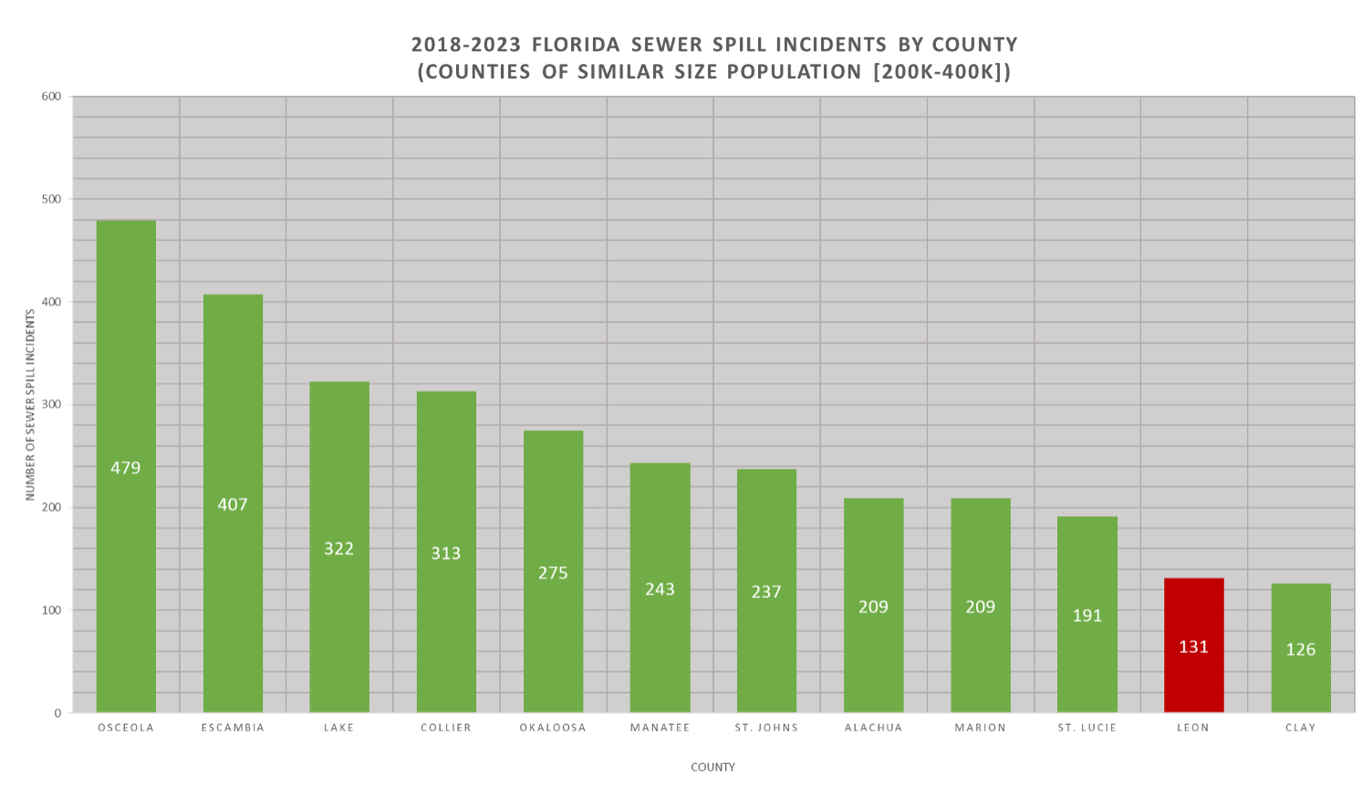 The City of Tallahassee is a leader in proactive sewer system management and maintenance and has made significant strides in reducing overflows over the last decade. Efforts have been consistently focused on minimizing SSOs and maintaining regulatory compliance with state and federal standards, especially from the Florida Department of Environmental Protection (FDEP) and the U.S. Environmental Protection Agency (EPA).